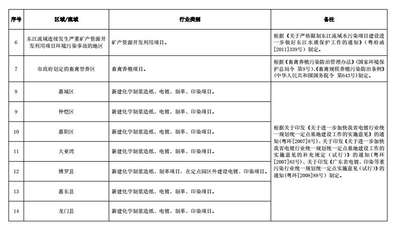 ? ?市環(huán)保局適時修訂《惠州市招商選資環(huán)保準入指引》,明確禁止、鼓勵項目和分區(qū)域環(huán)保準入要求。