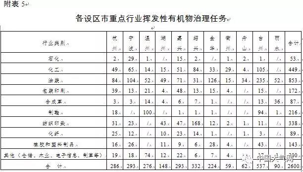 ?重點(diǎn)推進(jìn)石化、化工、工業(yè)涂裝、包裝印刷、合成革、制鞋、化纖、紡織印染、橡膠和塑料制品等行業(yè)VOCs污染防治,各地可依據(jù)當(dāng)?shù)禺a(chǎn)業(yè)結(jié)構(gòu)特色,因地制宜推進(jìn)木業(yè)、電子信息等行業(yè)VOCs治理工作。杭州市蕭山區(qū)等20個重點(diǎn)地區(qū)要編制地區(qū)VOCs深化治理方案,重點(diǎn)企業(yè)要建立完善“一廠一策一檔”制度。