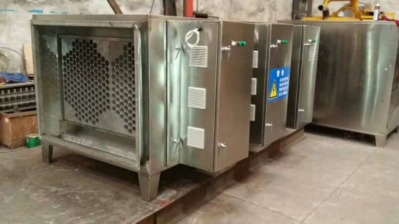 本產品利用特制的高能高臭氧UV紫外線光束照射廢氣,裂解工業(yè)廢氣如:氨、三甲胺、硫化氫、甲硫氫、甲硫醇、甲硫醚、乙酸丁酯、乙酸乙酯、二甲二硫、二硫化碳和苯乙烯,硫化物H2S、VOC類,苯、甲苯、二甲苯的分子鏈結構,使有機或無機高分子惡臭化合物分子鏈,在高能紫外線光束照射下,降解轉變成低分子化合物,如CO2、H2O等。利用高能高臭氧UV紫外線光束分解空氣中的氧分子產生游離氧,即活性氧,因游離氧所攜正負電子不平衡所以需與氧分子結合,進而產生臭氧