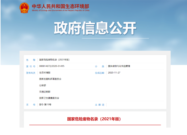 國家危險(xiǎn)廢物名錄(2021年版)審議通過 2021年1月1日起施行!