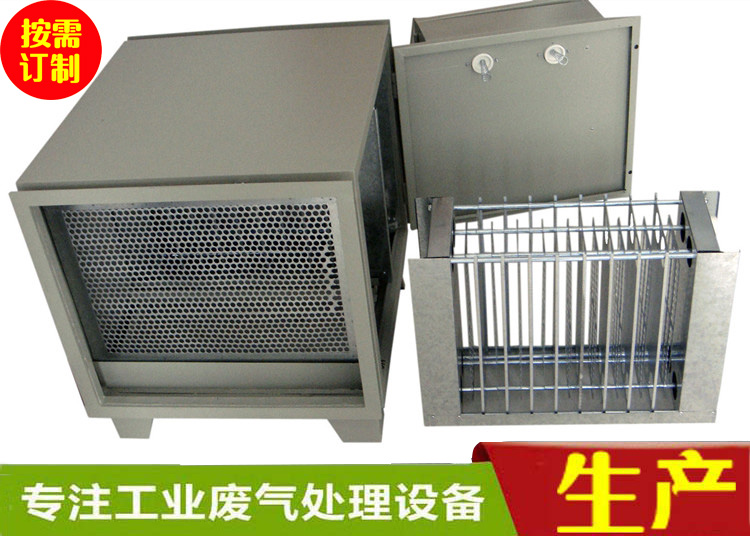 低空排靜電油煙凈化器在凈化器內(nèi)部形成超高壓電場,對通過凈化器的油煙中的污染物顆粒強烈電離并使之荷電,不僅使5微米以上的污染物顆粒在電場力的作用下產(chǎn)生電離,而且使1微米以下的污染物顆粒以及氣味分子充分荷電,這些飽和荷電的微粒和氣味分子經(jīng)過“吸附處理區(qū)”的中和處理,即可達(dá)到充分除油除味的功效。