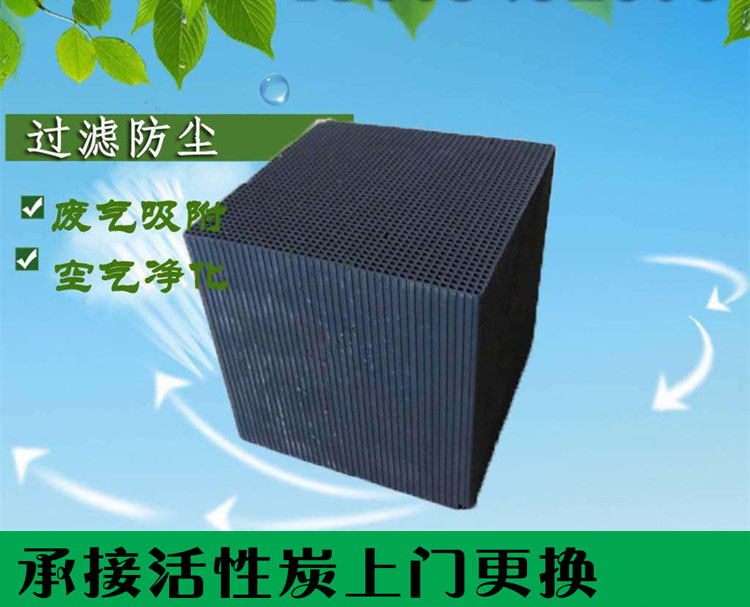 蜂窩活性炭具有比較面積大,通孔阻力小,微孔發(fā)達(dá),高吸附容量,使用壽命長等特點(diǎn),在空氣污染治理中普遍應(yīng)用。選用蜂窩活性炭吸附法,即廢氣與具有大表面的多孔性活性炭接觸,廢氣中的污染物被吸附分解,從而起到凈化作用。