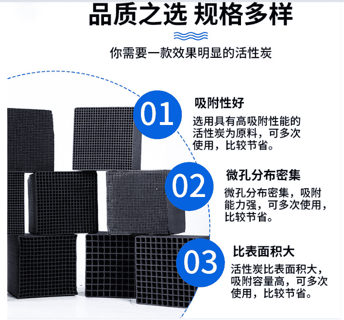 蜂窩活性炭不是以單體材料制作而是多體材料混合制作而成,能使活性炭自身的孔徑擴(kuò)大10%,并能把吸附物質(zhì)牢牢控制和氧化,提高了吸附效率延伸了使用壽命。