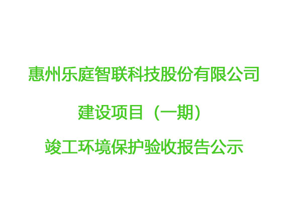 惠州樂庭智聯(lián)科技股份有限公司 建設(shè)項(xiàng)目(一期)竣工環(huán)境保護(hù)驗(yàn)收?qǐng)?bào)告公示
