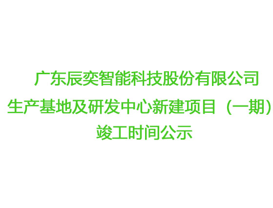 廣東辰奕智能科技股份有限公司生產(chǎn)基地及研發(fā)中心新建項(xiàng)目(一期)竣工時(shí)間公示