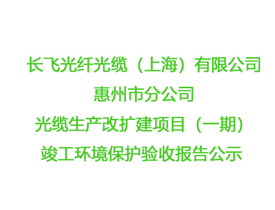 長飛光纖光纜(上海)有限公司惠州市分公司 光纜生產(chǎn)改擴(kuò)建項(xiàng)目(一期)竣工環(huán)境保護(hù)驗(yàn)收?qǐng)?bào)告公示