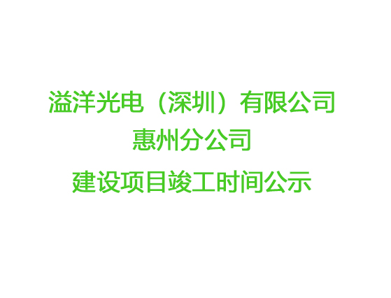 溢洋光電(深圳)有限公司惠州分公司建設項目竣工時間公示