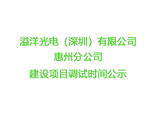 溢洋光電(深圳)有限公司惠州分公司 建設項目調(diào)試時間公示