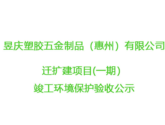 根據(jù)《國務(wù)院關(guān)于修改〈建設(shè)項(xiàng)目竣工環(huán)境保護(hù)管理?xiàng)l例〉的決定》(國務(wù)院令第682號),以及環(huán)保部《關(guān)于發(fā)布的公告》(國環(huán)規(guī)環(huán)評[2017]4號),現(xiàn)將昱慶塑膠五金制品(惠州)有限公司遷擴(kuò)建項(xiàng)目(一期)竣工環(huán)境保護(hù)驗(yàn)收內(nèi)容(包括驗(yàn)收報(bào)告、驗(yàn)收意見)。