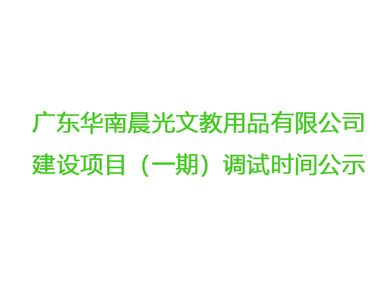 根據(jù)《建設(shè)項(xiàng)目環(huán)境保護(hù)管理?xiàng)l例》、《關(guān)于發(fā)布建設(shè)項(xiàng)目竣工環(huán)境保護(hù)驗(yàn)收暫行辦法>的公告》(國環(huán)規(guī)環(huán)評〔2017〕4號)等要求,我公司公開廣東華南晨光文教用品有限公司建設(shè)項(xiàng)目(一期)的調(diào)試日期: