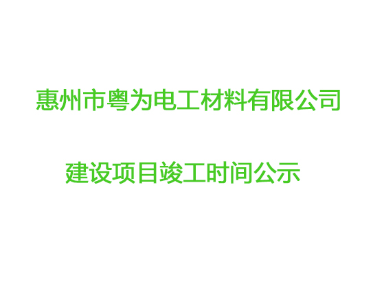 惠州市粵為電工材料有限公司建設(shè)項(xiàng)目竣工時(shí)間公示。