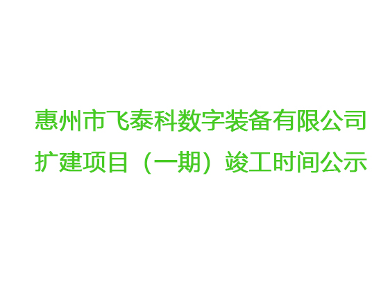 惠州市飛泰科數(shù)字裝備有限公司擴(kuò)建項目(一期)竣工時間公示