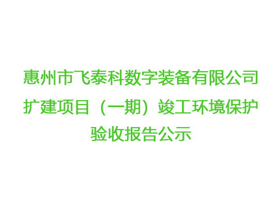 惠州市飛泰科數(shù)字裝備有限公司擴(kuò)建項目(一期)竣工環(huán)境保護(hù)驗收報告公示